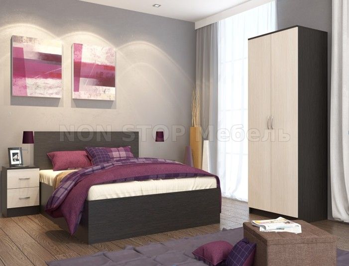Спальный гарнитур Ронда (Спальня Ронда) Цвет венге/беленый дуб, ясень шимо темный/беленый дуб В комплект входит: -кровать 1435х2035 - спальное место 1400х2000 мм - тумба прикроватная 2 шт 400х416х416 мм - шкаф двухстворчатый 800х2116х520 мм